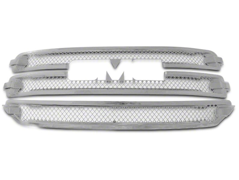 Tough, Rugged Look. On top of affording your grille plenty of protection, this overlay set also enhances your rig’s style. It is designed with a contemporary mesh pattern in thin frames. The grille overlay set includes 3 individual pieces that are tailored for a perfect, precise fit so that they look unified around your existing GMC grille logo. The whole thing is finished in chrome for a tough, sleek look.