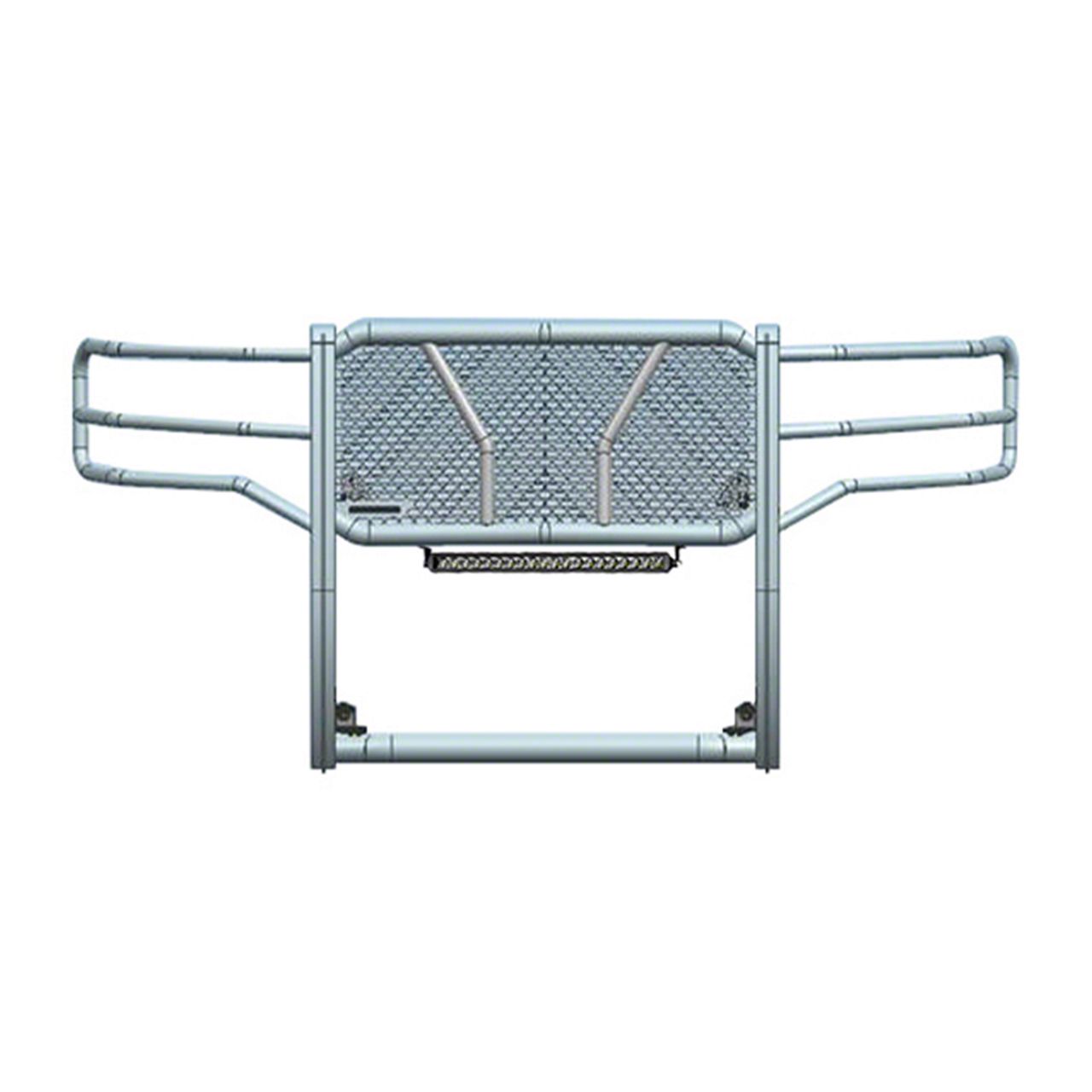 Light Up the Night. The integrated 20-inch single-row LED light bar is the crown jewel of the Rugged Grille Guard. Unlike fumbling with flimsy spotlights, this powerful LED bar seamlessly integrates into the guard's design. With a flip of a switch, you'll bathe dark roads and off-road trails in a brilliant light, turning night into day. This enhanced visibility lets you navigate with confidence, ensuring you see potential hazards and avoid unwanted surprises.