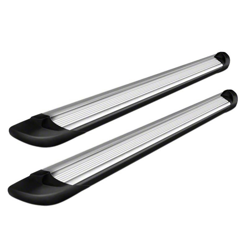 Stylish And Durable. These running boards are made from premium-quality lightweight aluminum in the U.S. by industry-leading manufacturer Black Horse. The polished silver finish is resistant to fading, warping, and corrosion. The ends are reinforced with ABS plastic end caps, and the textured surface ensures safe vehicle entry.