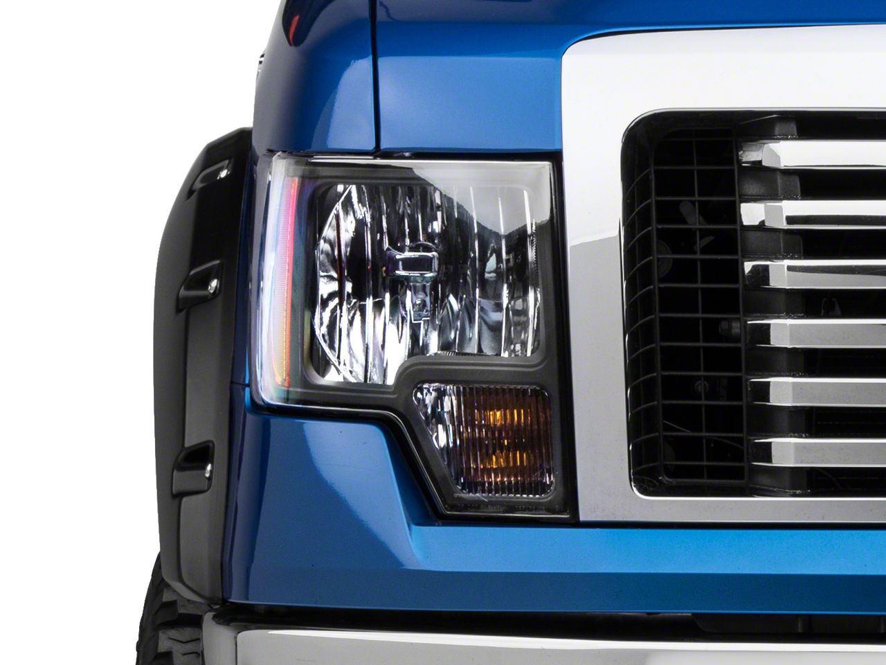 Application. This pair of Black Euro Style F-150 Headlights are designed to fit the 2009 to 2014 F-150s that are equipped with standard halogen bulbs.