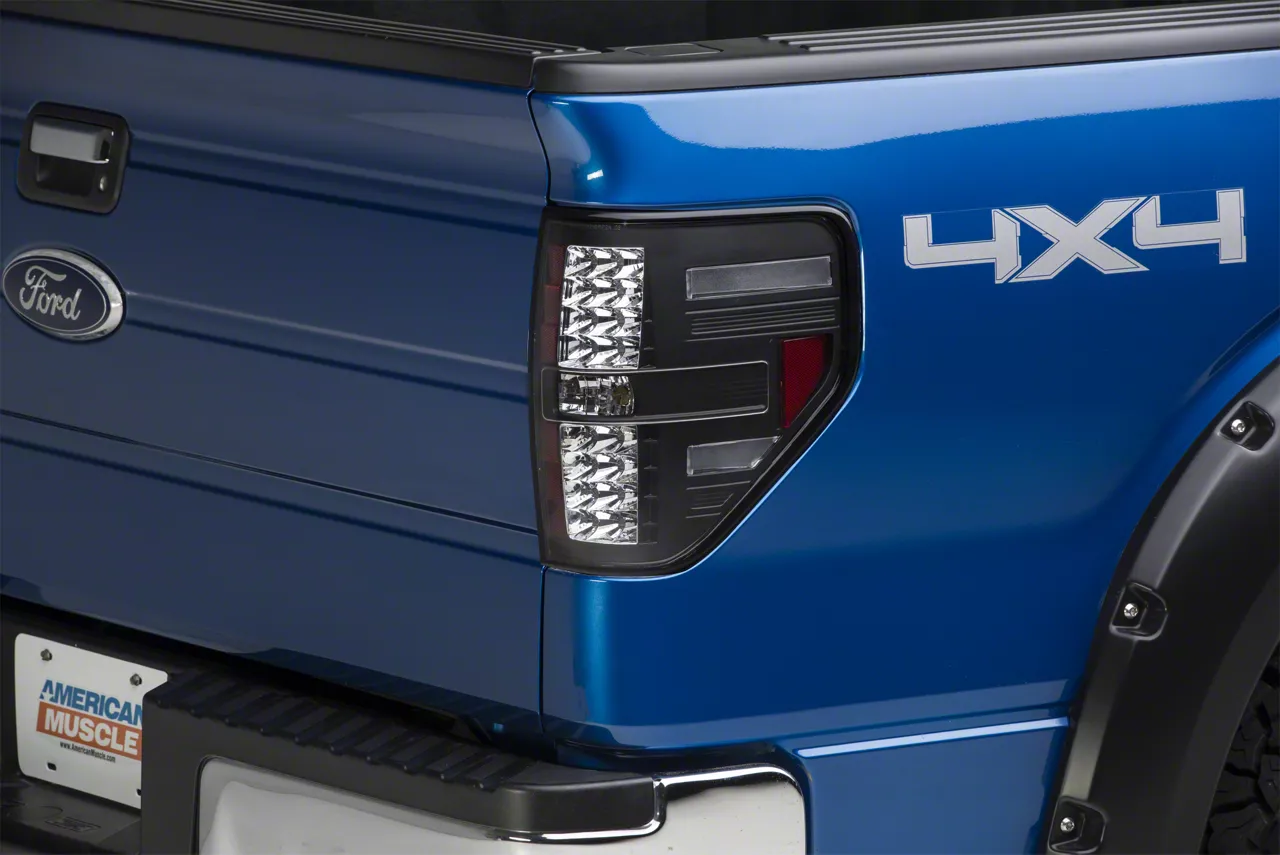 Modern Styling. Bring your 12th Gen F-150 up to speed with the times by upgrading those weak factory tail lights. Install a pair of super bright, Axial LED Tail Lights with a stealthy black housing to really change the appearance of your pickup. Featuring durable clear lenses, these Black LED Tails will last for many, many years and will provide a modern, brighter brake light to grab the attention of distracted drivers out on the road.