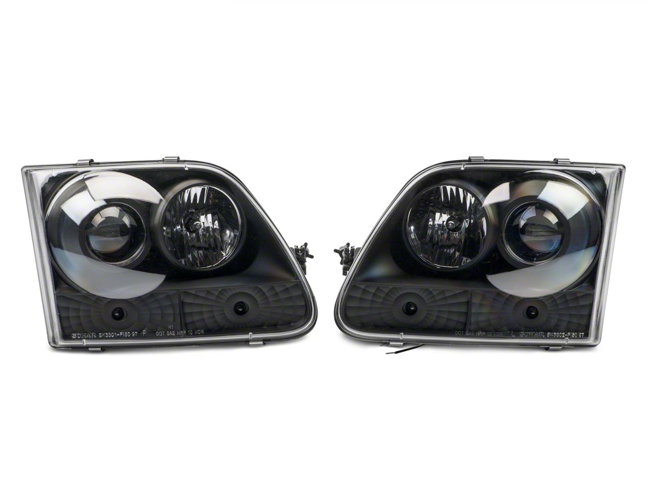 Halo Projector Headlights; Black Housing; Clear Lens (97-03 F-150)Find parts that fit my vehicle