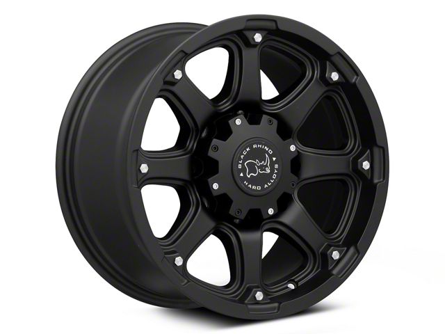 The 18x9 Black Rhino Glamis Matte Black 8-Lug Wheel; ; -12mm Offset is coated with a specially formulated matte black finish. It protects the entire wheel against corrosion, while adding a stunning appeal to your ride’s appearance.