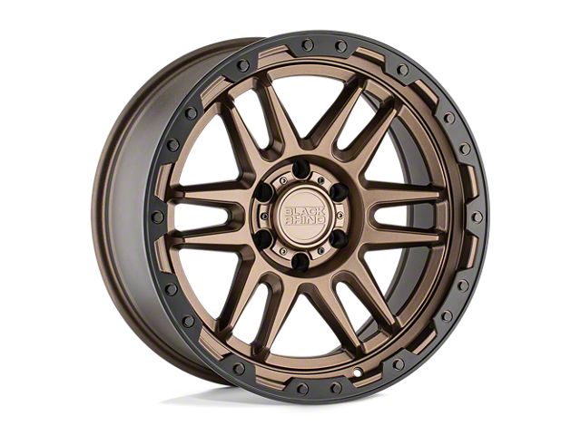 Black Rhino Apache Matte Bronze with Black Ring 6-Lug Wheel; 18x9; 12mm Offset exudes sophistication with its finish, offering a sleek and modern appeal to any vehicle it adorns. The design is meticulously crafted to enhance the aesthetic of your vehicle, giving it a distinctive and upscale look. Perfect for those seeking to elevate their vehicle's style, this wheel blends seamlessly with both contemporary and classic vehicle designs, making it a versatile choice for a wide range of vehicles. Its robust construction ensures durability, making it a reliable choice for drivers who value both style and quality.