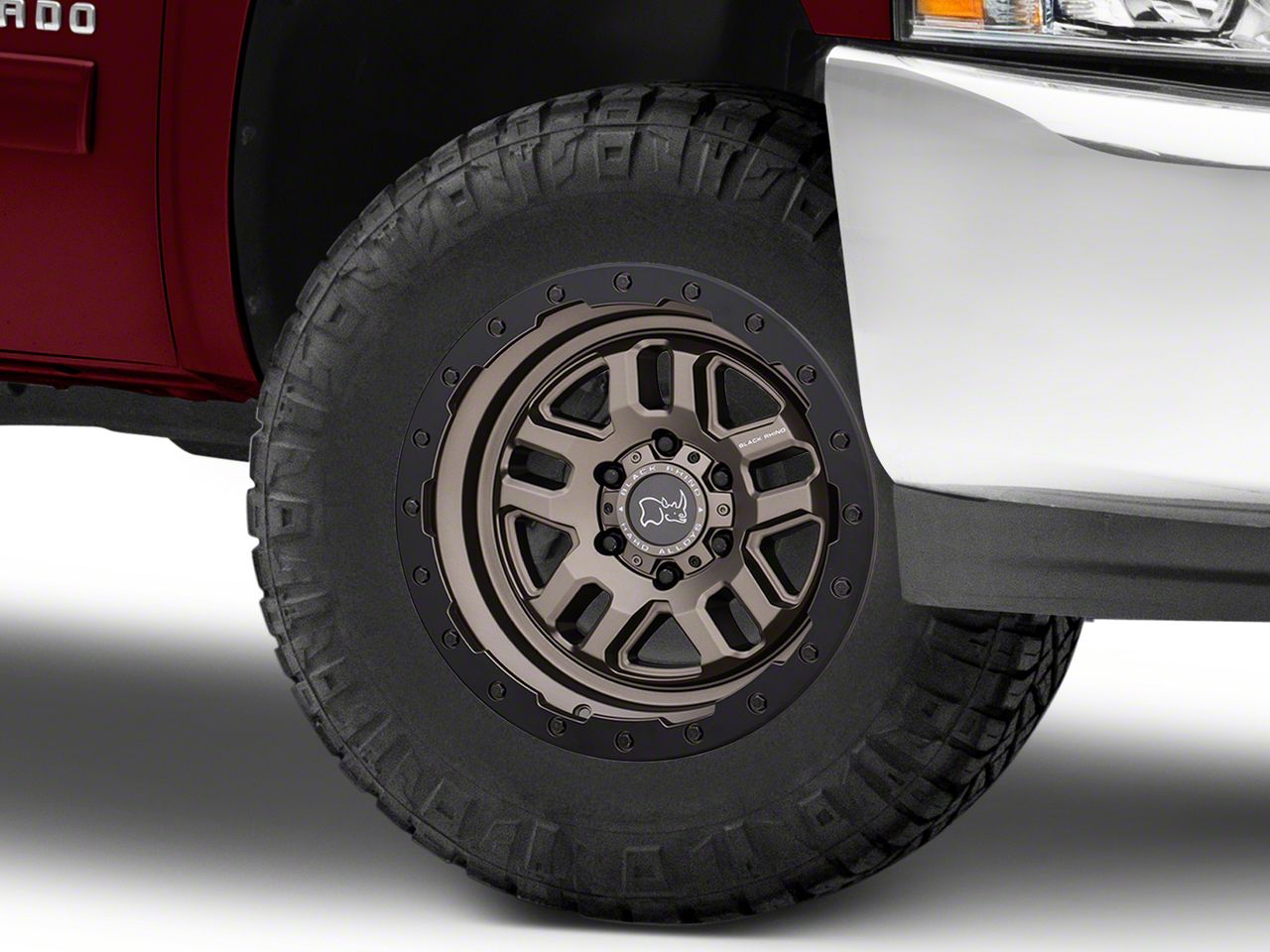 Application. This Black Rhino Barstow Matte Bronze with Matte Black Ring 6-Lug Wheel; 17x9.5; -18mm Offset, with a backspace of 4.541 Inch, 115.3mm; and bolt pattern of 6 x 139.7mm (6 x 5.5-Inch), is designed to fit the 2007-2013 Silverado 1500 . The precise specifications of the wheel ensure proper alignment and driving stability, perfectly complementing the vehicle's model. Sold individually.
