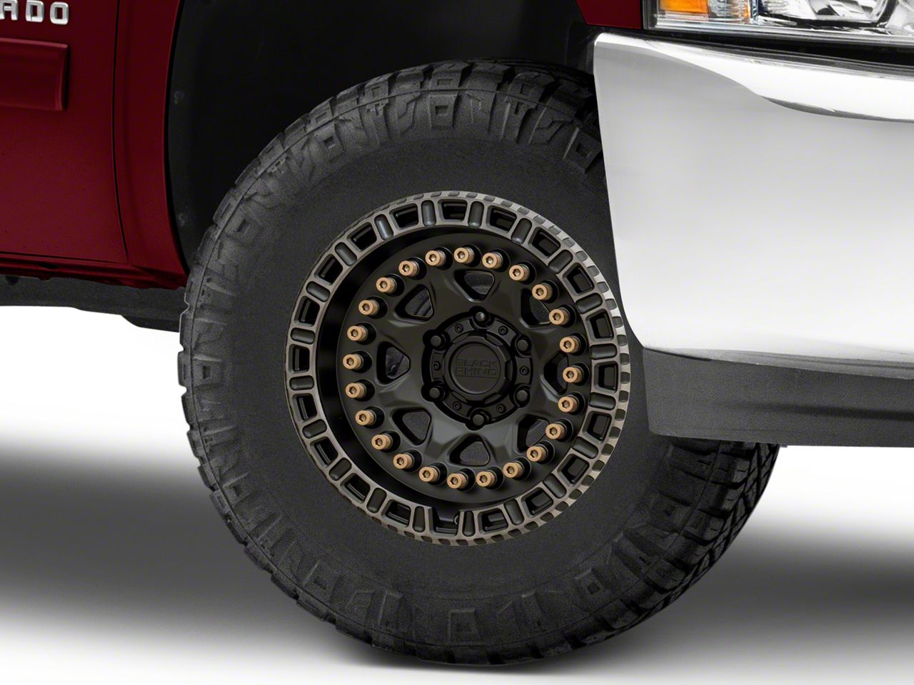 Application. This Black Rhino Carbine Matte Black with Machined Tinted Ring 6-Lug Wheel; 17x8.5; 0mm Offset with a backspace of 4.75 Inch, 120.7mm; and bolt pattern of 6 x 139.7mm (6 x 5.5-Inch) contributes to impeccable alignment and driving stability. Designed to fit 2007-2013 Silverado 1500 models, sold individually.
