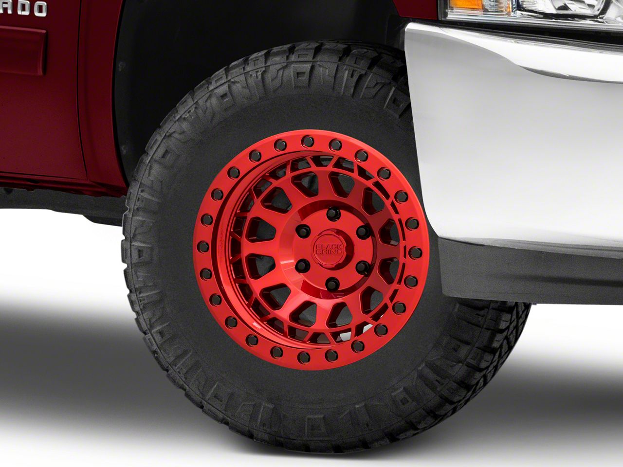 Application This Silverado Primm Candy Red with Black Bolts 6-Lug Wheel; 17x9; 0mm Offset, with a backspace of 5 Inch, 127mm and bolt pattern of 6 x 139.7mm (6 x 5.5-Inch), ensures precise alignment, optimal driving stability, and a seamless fit. It is designed to fit the 2007-2013 Silverado 1500. Sold individually.