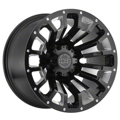 The 17x9.5 Black Rhino Pinatubo Gloss Black Milled 8-Lug Wheel; 17x9.5; 6mm Offset is completed in a high quality, gloss black finish. The milled steel accents are where it really shines through. The accents make the split section of the spokes pop along the faux beadlock.