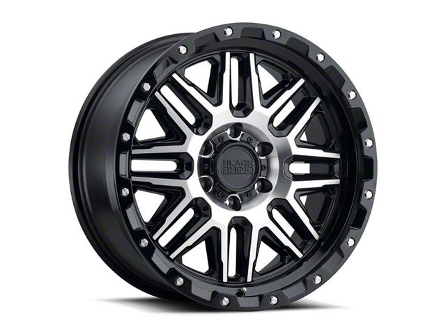 Black Rhino Alamo Gloss Black Machined 6-Lug Wheel; 17x9; -18mm Offset. The Black Rhino Alamo Gloss Black Machined 6-Lug Wheel offers a striking balance of style and refinement. Its unique design accentuates the vehicle's aesthetic, while the premium construction underscores its robust nature. This wheel is a perfect choice for those seeking both elegance and a strong visual statement.