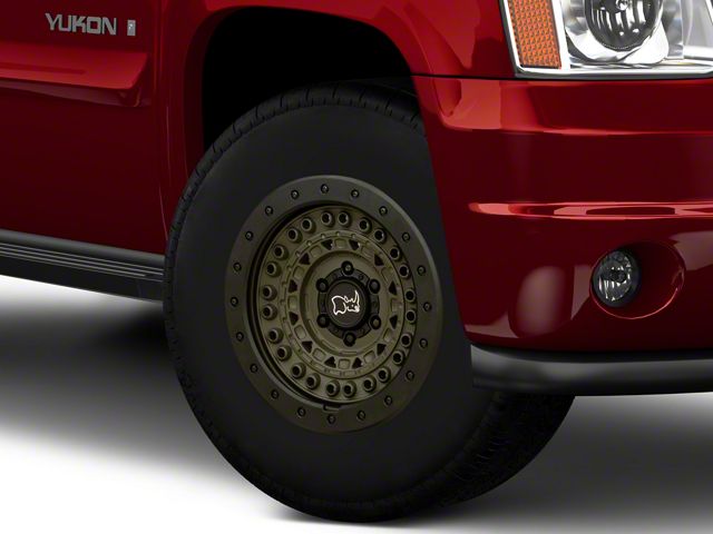Application. This Black Rhino Barricade Olive Drab Green with Black Rock Guard 6-Lug Wheel; 17x8.5; 0mm Offset with a backspace of 4.75 Inch, 120.7mm and bolt pattern of 6 x 139.7mm (6 x 5.5-Inch) ensures impeccable alignment and driving stability. It's designed to fit the 07-14 Yukon models, sold individually.