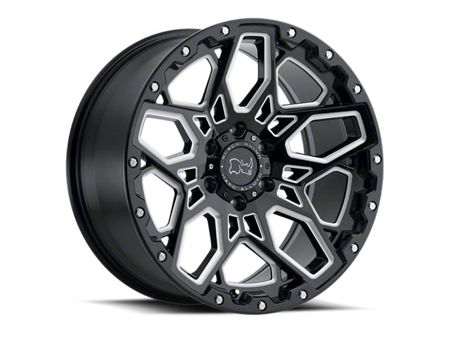 Black Rhino Shrapnel Gloss Black with Milled Spokes 6-Lug Wheel; 17x9.5; 12mm Offset The Black Rhino Shrapnel Gloss Black with Milled Spokes 6-Lug Wheel combines a sleek, sophisticated design with premium construction that enhances the visual appeal and complements a wide range of vehicle styles. This wheel is perfect for those seeking to make a bold statement while maintaining elegance and robustness.