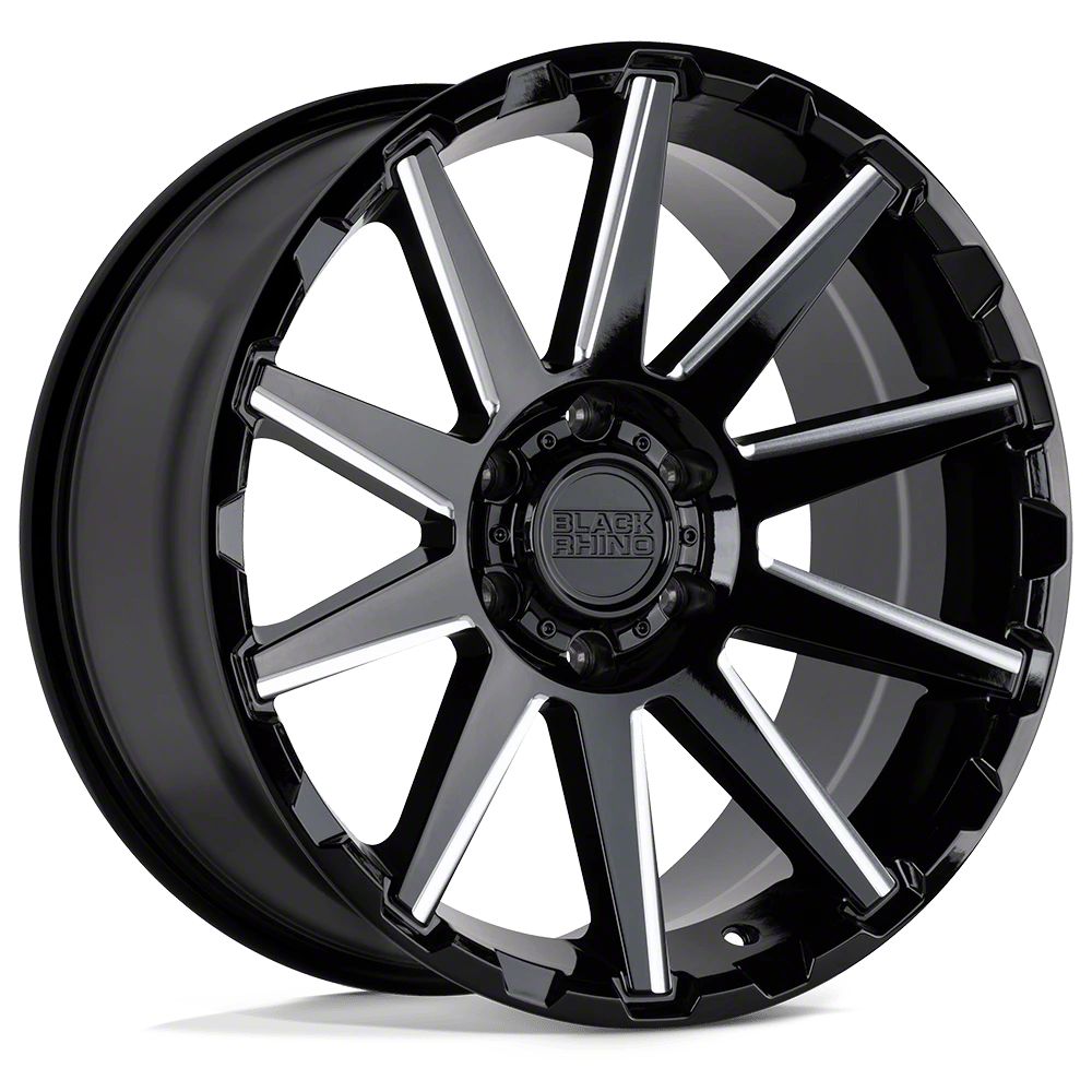 Black Rhino Typhoon Gloss Black with Milled Spokes 6-Lug Wheel; 18x9.5; 12mm Offset The Black Rhino Typhoon Gloss Black with Milled Spokes 6-Lug Wheel combines a sleek, sophisticated design with premium construction that enhances the visual appeal and complements a wide range of vehicle styles. This wheel is perfect for those seeking to make a bold statement while maintaining elegance and robustness.