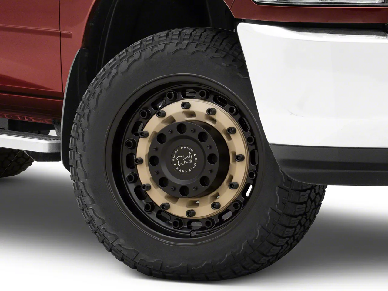 Application. This Black Rhino Arsenal Sand on Black 8-Lug Wheel; 20x12; -44mm Offset with a backspace of 4.768 Inch, 121.2mm and bolt pattern of 8 x 165.1mm (8 x 6.5-Inch) ensures optimal alignment, unparalleled driving stability, and an impeccable fit with your vehicle. It is designed to fit the 2010-2018 RAM 2500 models. Sold individually.