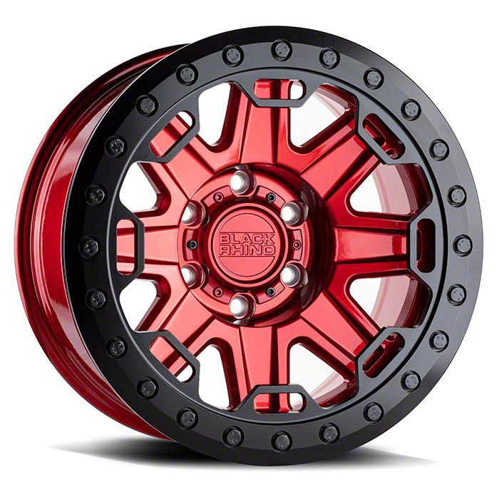 Black Rhino Rift Beadlock Candy Red 8-Lug Wheel; 17x8.5; -38mm Offset. The Black Rhino Rift Beadlock Candy Red 8-Lug Wheel offers a striking balance of style and refinement. Its unique design accentuates the vehicle's aesthetic, while the premium construction underscores its robust nature. This wheel is a perfect choice for those seeking both elegance and a strong visual statement.