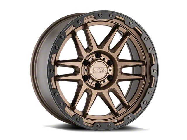 Black Rhino Apache Matte Bronze with Black Bolts 6-Lug Wheel; 18x9; -18mm Offset. Enhance your vehicle's look with the Black Rhino Apache Matte Bronze with Black Bolts 6-Lug Wheel. This premium wheel adds a touch of elegance and class to your vehicle, complementing its sophisticated aesthetic.