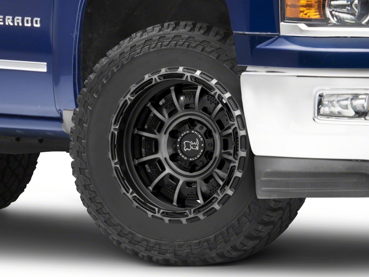 Application. This Black Rhino Legion Matte Black with Gray Tint 6-Lug Wheel; 20x10; -18mm Offset, with a backspace of 4.792 Inch, 121.8mm; and bolt pattern of 6 x 139.7mm (6 x 5.5-Inch), ensures precise alignment and unwavering stability. Designed to fit the 2014-2018 Silverado 1500 models, it stands out as a tailored enhancement. Sold individually.