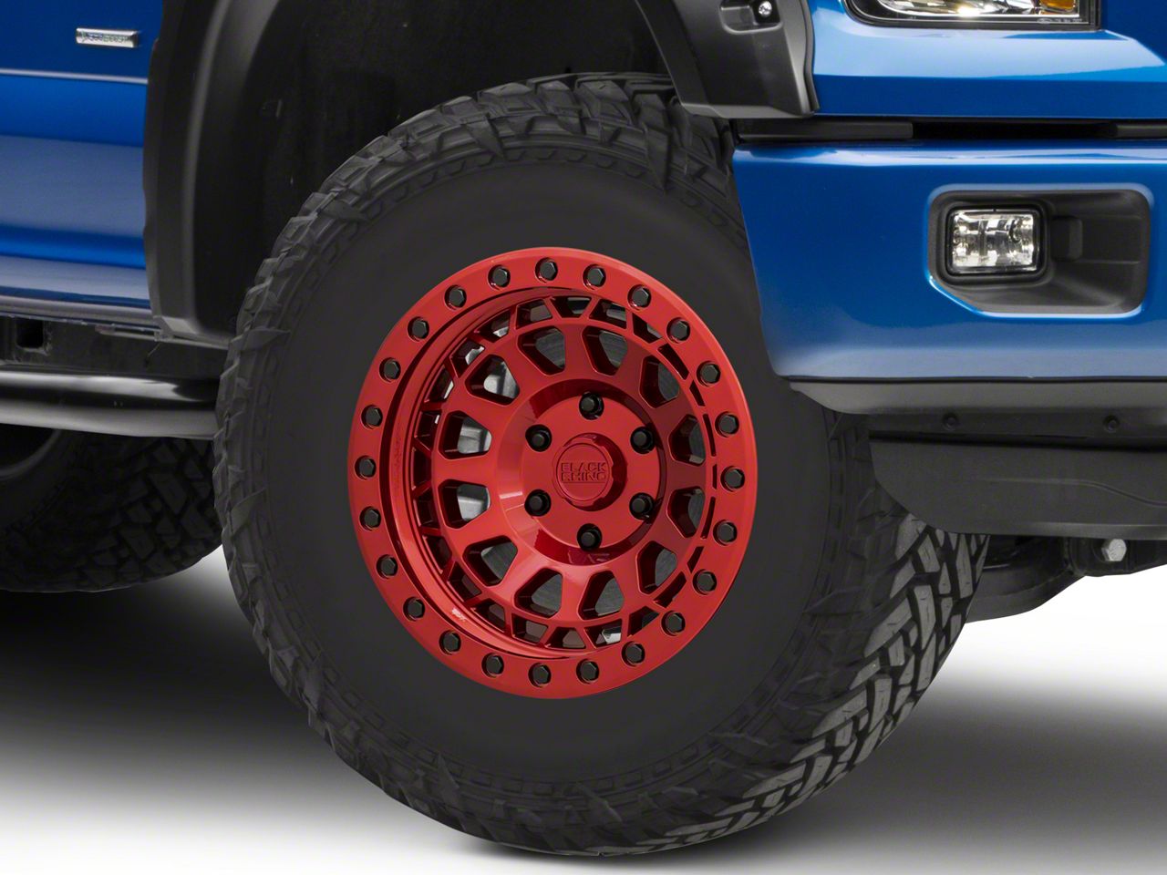 Application. This Black Rhino Primm Candy Red with Black Bolts 6-Lug Wheel; 17x9; 0mm Offset, with a backspace of 5 Inch, 127mm and bolt pattern of 6 x 135mm (6 x 5.31-Inch), is designed to provide not only a striking visual appeal but also to contribute significantly to the alignment and driving stability of the vehicle. Its specifications ensure a precise fit with the vehicle model, enhancing the overall driving experience. Built to fit the 2015-2020 F-150, this wheel is sold individually.
