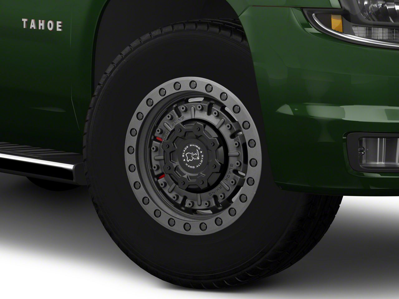 Application. This Black Rhino Abrams Textured Matte Gunmetal 6-Lug Wheel; 18x9.5; 12mm Offset with a backspace of 5.723 Inch, 145.4mm; and bolt pattern of 6 x 139.7mm (6 x 5.5-Inch) contributes to impeccable alignment and driving stability. Designed to fit 202015-202020 Tahoe models, sold individually.