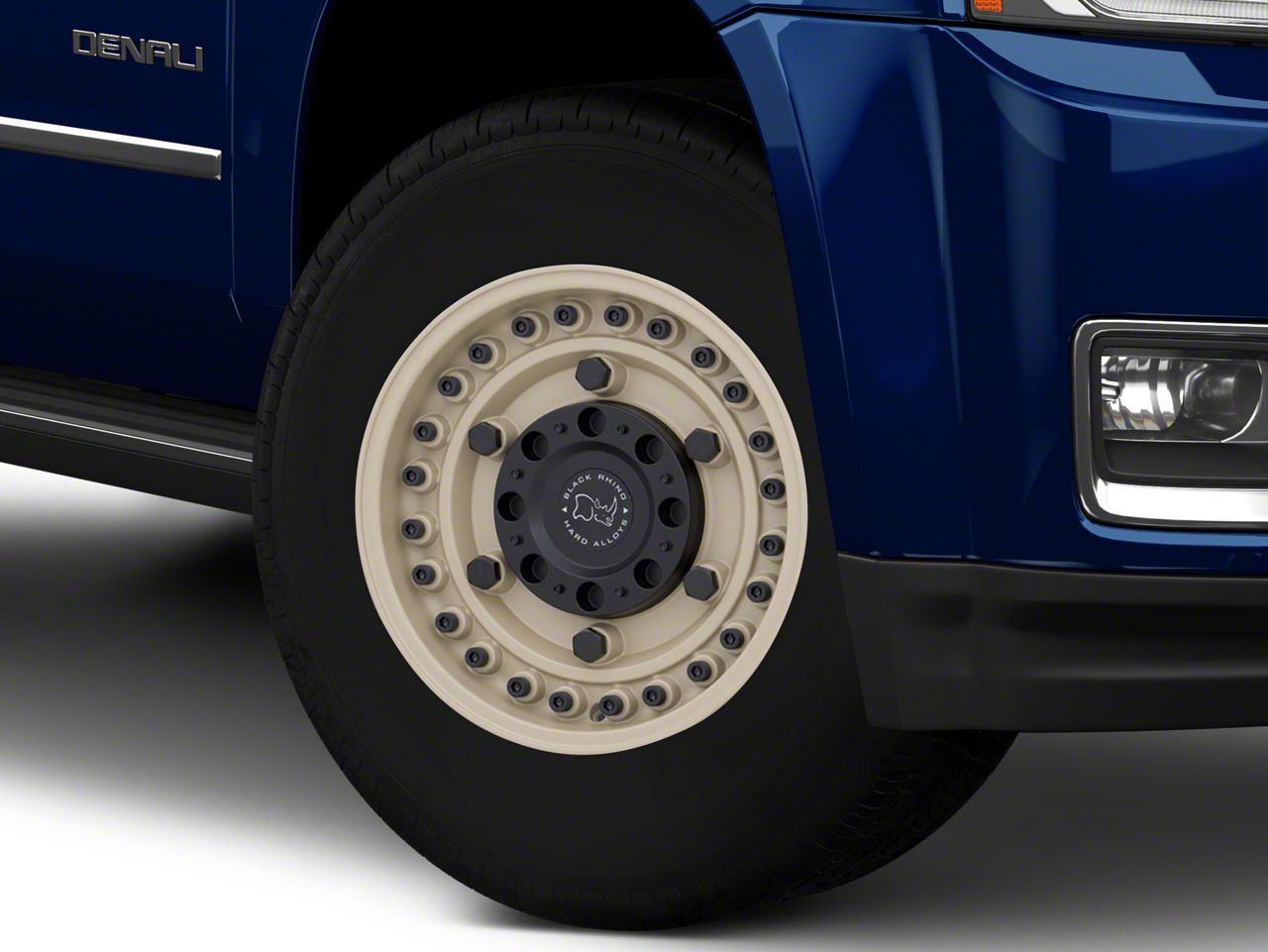 The 17x9.5 Black Rhino Armory Desert Sand 6-Lug Wheel stands as much for its tactical design and for its appearance. It features a camouflage-like Desert Sand painted finish that's durable enough to withstand the desert terrain.