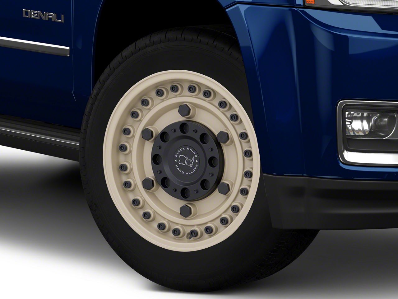 The 20x9.5 Black Rhino Armory Desert Sand 6-Lug Wheel features a camouflage-like Desert Sand painted finish that's durable enough to withstand the desert terrain. This unique and eye-catching color is Offset by the matte black hardware along the face of the wheel.
