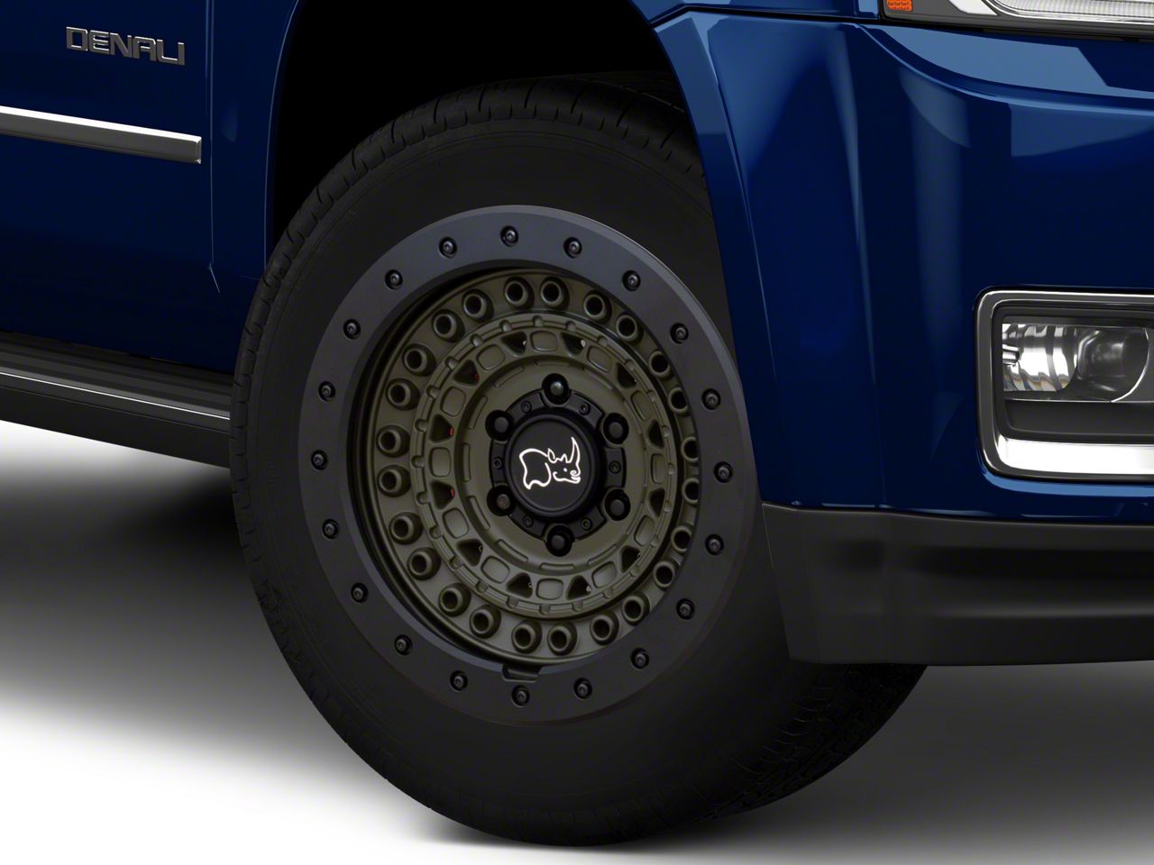 Application. The Black Rhino Barricade Olive Drab Green with Black Rock Guard 6-Lug Wheel; 20x9; 0mm Offset, with a backspace of 5 Inch, 127mm and a bolt pattern of 6 x 139.7mm (6 x 5.5-Inch), is designed to enhance alignment and stability for a smooth driving experience. Specifically tailored to fit 2015-2020 Yukon models, it ensures a perfect blend of style and functionality. Sold individually, this wheel is an ideal upgrade for your vehicle.