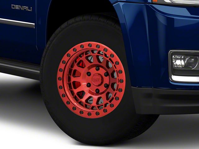 Application This Yukon Primm Candy Red with Black Bolts 6-Lug Wheel; 17x9; 0mm Offset, with a backspace of 5 Inch, 127mm and bolt pattern of 6 x 139.7mm (6 x 5.5-Inch), ensures precise alignment, optimal driving stability, and a seamless fit. It is designed to fit the 2015-2020 Yukon. Sold individually.