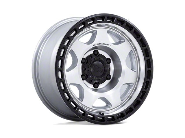 Black Rhino Voyager Silver Machined Face with Matte Black Lip 6-Lug Wheel; 17x8.5; 0mm Offset The Black Rhino Voyager Silver Machined Face with Matte Black Lip 6-Lug Wheel combines a sleek, sophisticated design with premium construction that enhances the visual appeal and complements a wide range of vehicle styles. This wheel is perfect for those seeking to make a bold statement while maintaining elegance and robustness.