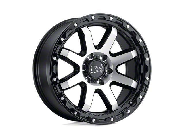 Black Rhino Coyote Gloss Black Machined and Stainless Bolts 8-Lug Wheel; 17x9; -18mm Offset exudes sophistication with its finish, offering a sleek and modern appeal to any vehicle it adorns. The design is meticulously crafted to enhance the aesthetic of your vehicle, giving it a distinctive and upscale look. Perfect for those seeking to elevate their vehicle's style, this wheel blends seamlessly with both contemporary and classic vehicle designs, making it a versatile choice for a wide range of vehicles. Its robust construction ensures durability, making it a reliable choice for drivers who value both style and quality.