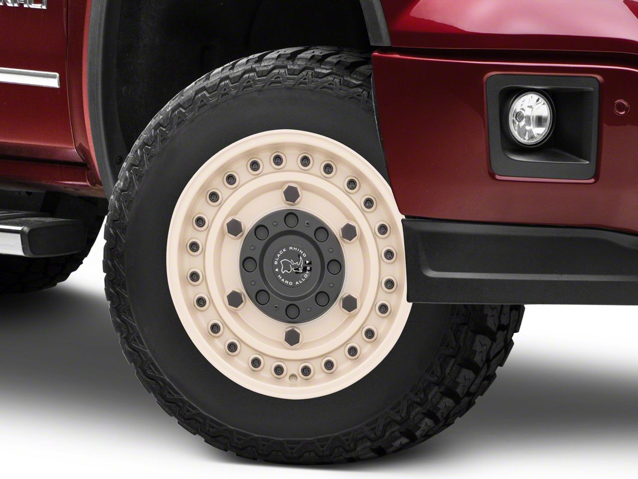 The 18x9.5 Black Rhino Armory Desert Sand 6-Lug Wheel stands as much for its tactical design and for its appearance. It features a camouflage-like Desert Sand painted finish that's durable enough to withstand the desert terrain. This unique and eye-catching color is offset by the matte black hardware along the face of the wheel.