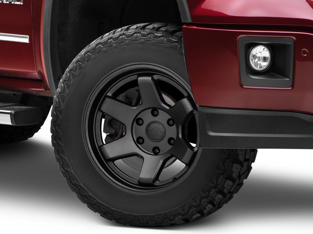 Application. This Black Rhino Roku Gunblack 6-Lug Wheel; 18x9.5; -18mm Offset with a backspace of 4.542 Inch, 115.4mm; and bolt pattern of 6 x 139.7mm (6 x 5.5-Inch) contributes to impeccable alignment and driving stability. Designed to fit 2014-2018 Sierra 1500 models, sold individually.