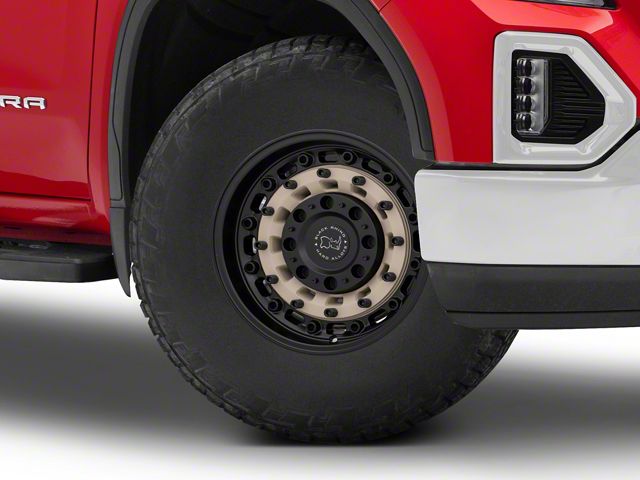 Application. This Black Rhino Arsenal Sand on Black 6-Lug Wheel; 17x9.5; -18mm Offset with a backspace of 4.542 Inch, 115.4mm and bolt pattern of 6 x 139.7mm (6 x 5.5-Inch) ensures optimal alignment, unparalleled driving stability, and an impeccable fit with your vehicle. It is designed to fit the 2019-2026 Sierra 1500 models. Sold individually.