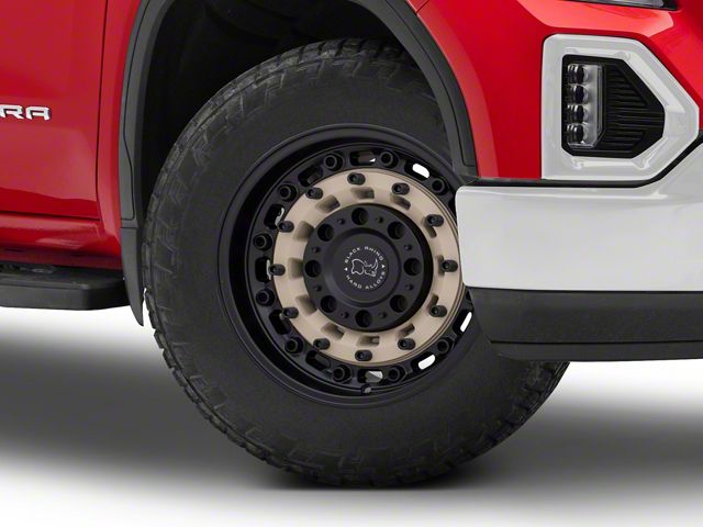 Application. This Black Rhino Arsenal Sand on Black 6-Lug Wheel; 20x9.5; 12mm Offset, with a backspace of 5.723 Inch, 145.4mm and bolt pattern of 6 x 139.7mm (6 x 5.5-Inch), ensures proper alignment and stability. It's designed to fit the 2019-2026 Sierra 1500 models, enhancing both the look and the overall driving experience. Sold individually.
