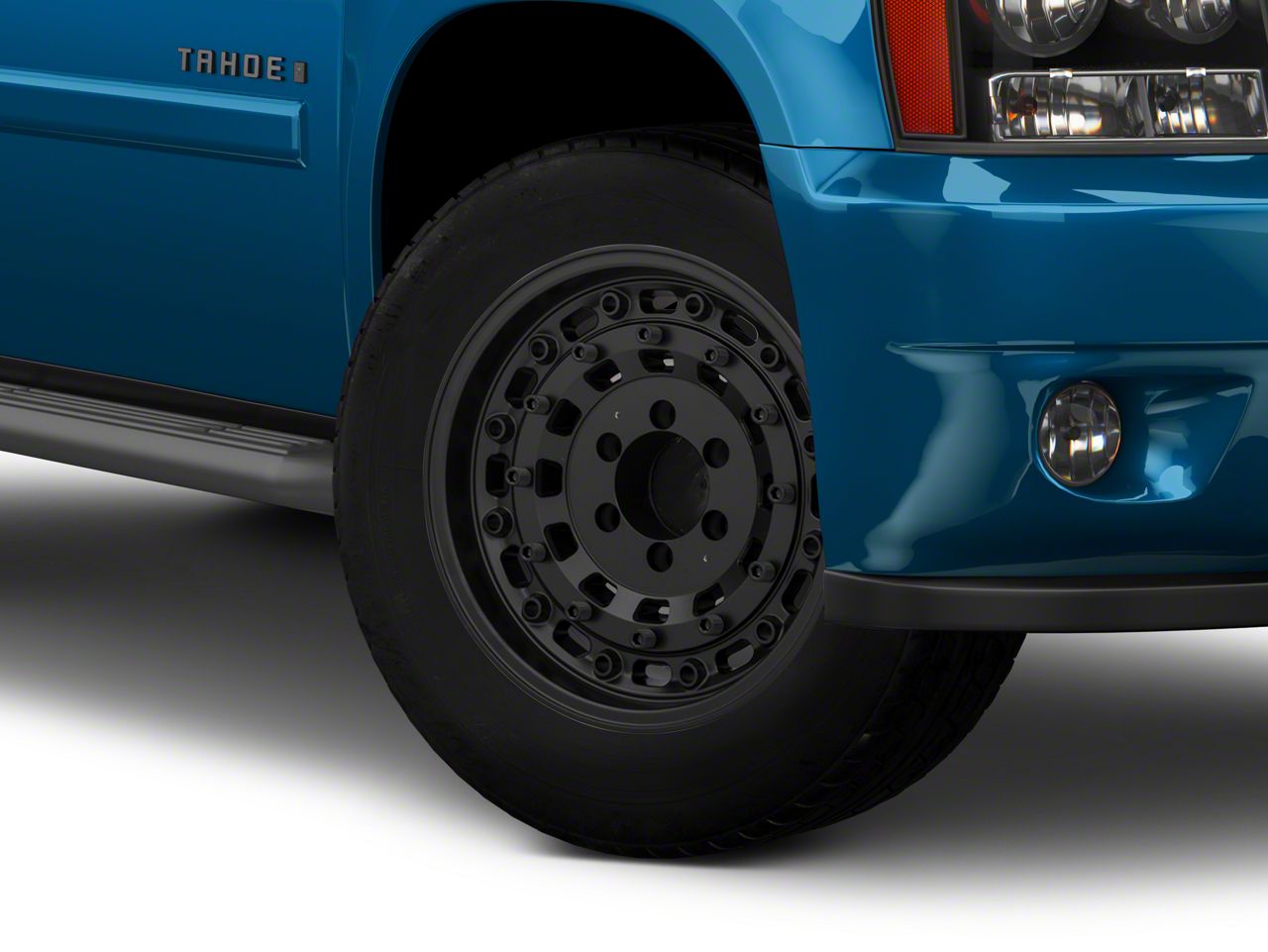Arsenal Textured Matte Black 6-Lug Wheel; 20x9.5; -18mm OffsetThe Arsenal Textured Matte Black 6-Lug Wheel offers a sleek and sophisticated look, elevating the vehicle’s presence with its distinct design. Crafted with precision, it complements the aesthetic, adding a touch of elegance to the vehicle’s overall appearance.