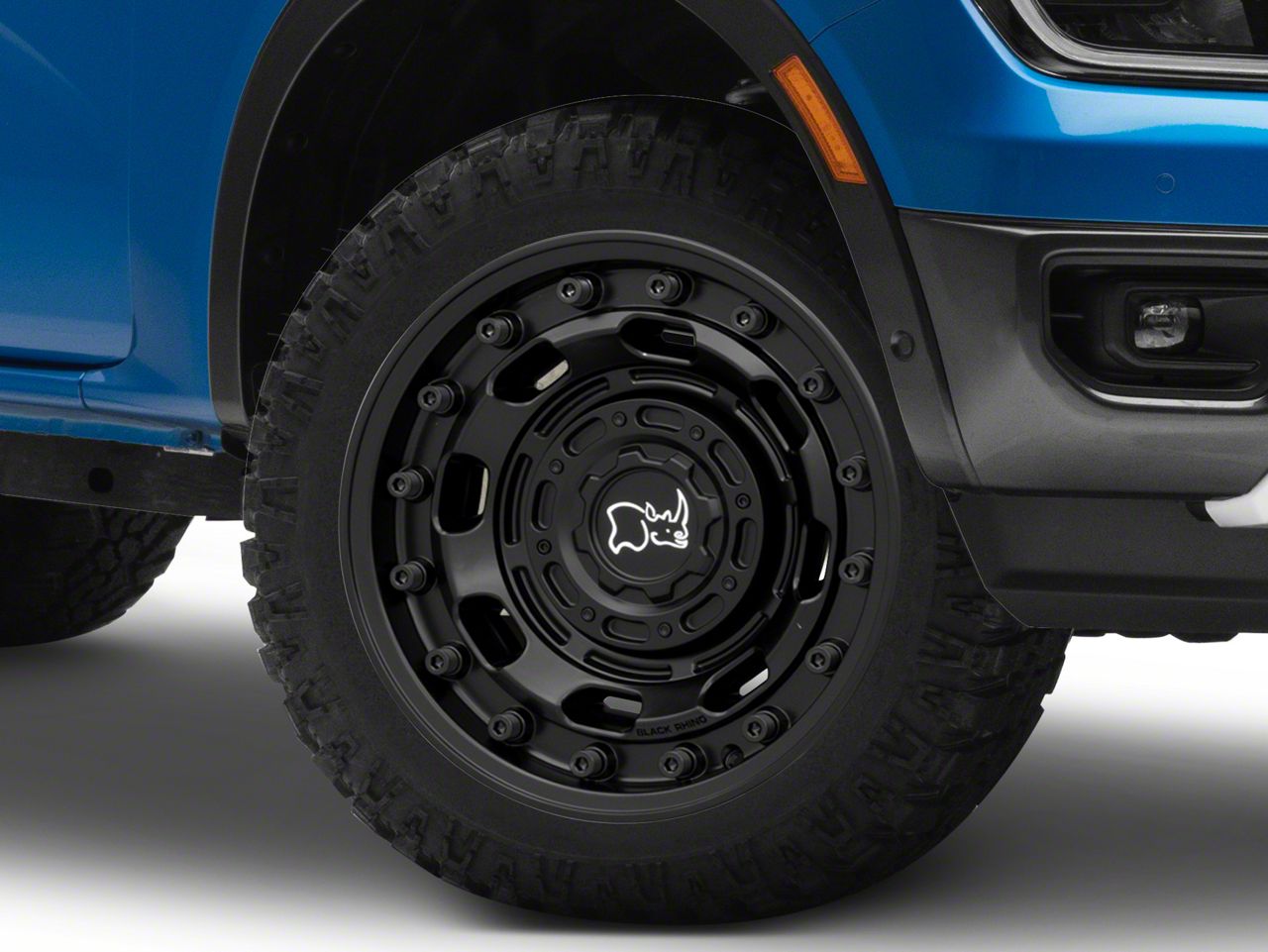 Application. This Black Rhino wheel, Atlas Matte Black 6-Lug Wheel; 20x10; -18mm Offset, features a backspace of 4.791 Inch, 121.7mm and a bolt pattern of 6 x 139.7mm . These specifications help ensure proper wheel alignment and enhance driving stability. It is designed to fit the 2024-2026 Ranger models. Sold individually.