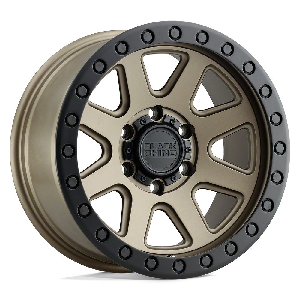 Application. This Black Rhino Baker Matte Bronze with Black Ring 6-Lug Wheel; 17x8.5; 0mm Offset, with a backspacing of 4.75 Inch, 120.6mm and a bolt pattern of 6 x 114.3mm (6 x 4.5-Inch), is designed to fit 1991-201996 models. Sold individually.