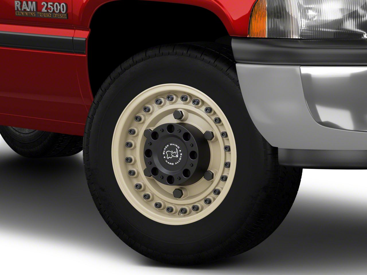 Application. This Black Rhino Armory Desert Sand 8-Lug Wheel; 18x9.5; -2018mm Offset, with a backspacing of 4.541 Inch, 115.3mm and bolt pattern of 8 x 165.1mm (8 x 6.5-Inch), is designed to fit 1994-2002 RAM 2500 models. Sold individually.