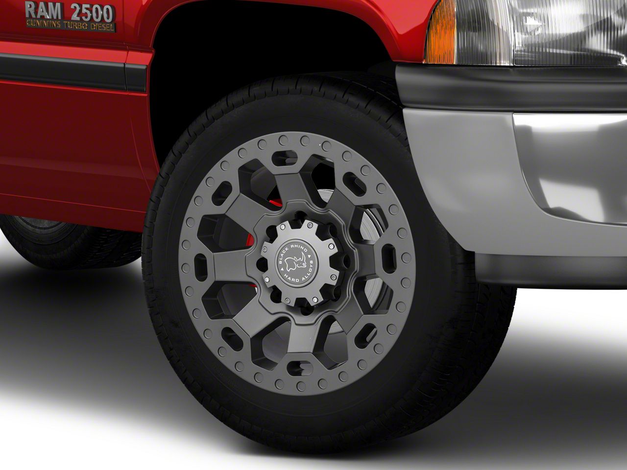 Application. This Black Rhino Warlord Matte Gunmetal 8-Lug Wheel; 20x9; 12mm Offset, with a backspacing of 5.472 Inch, 139mm and bolt pattern of 8 x 165.1mm (8 x 6.5-Inch), is designed to fit 1994-2002 RAM 2500 models. Sold individually.