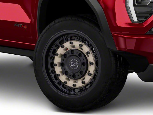 Application. This Black Rhino Arsenal Sand On Black 6-Lug Wheel; 20x9.5; -18mm Offset, with a backspace of 4.541 Inch, 115.3mm and bolt pattern of 6 x 139.7mm (6 x 5.5-Inch), ensures proper alignment and stability. It's designed to fit the 2023-2026 Canyon models, enhancing both the look and the overall driving experience. Sold individually.