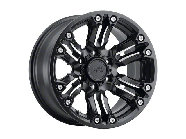 Black Rhino Asagai Matte Black Machined with Stainless Bolts 6-Lug Wheel; 18x9.5; -18mm Offset. The Black Rhino Asagai Matte Black Machined with Stainless Bolts 6-Lug Wheel offers a striking balance of style and refinement. Its unique design accentuates the vehicle's aesthetic, while the premium construction underscores its robust nature. This wheel is a perfect choice for those seeking both elegance and a strong visual statement.