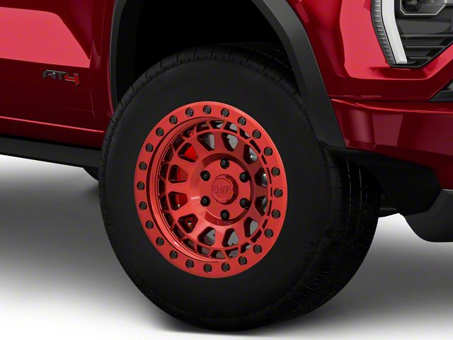 Application. This Black Rhino Primm Candy Red with Black Bolts 6-Lug Wheel; 17x9, with a backspace of 5 Inch, 127mm and a bolt pattern of 6 x 139.7mm (6 x 5.5-Inch), is designed to enhance alignment and driving stability. It's specially designed to fit the 2023-2026 Canyon models, sold individually.