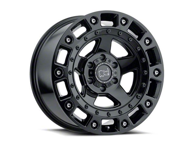 Black Rhino Cinco Gloss Black with Stainless Bolts 6-Lug Wheel; 18x9.5; -18mm Offset. The Black Rhino Cinco Gloss Black with Stainless Bolts 6-Lug Wheel offers a striking balance of style and refinement. Its unique design accentuates the vehicle's aesthetic, while the premium construction underscores its robust nature. This wheel is a perfect choice for those seeking both elegance and a strong visual statement.