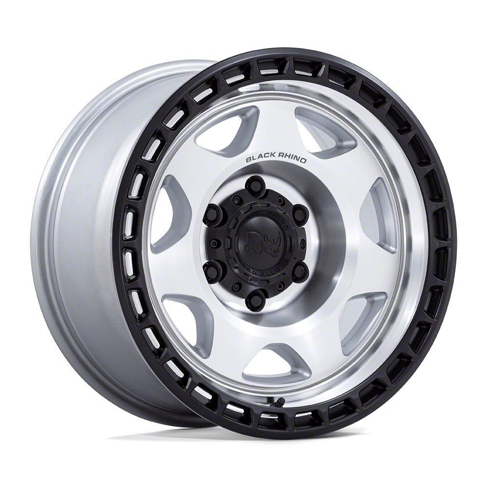 Black Rhino Voyager Silver Machined Face with Matte Black Lip 6-Lug Wheel; 17x8.5; -10mm Offset The Black Rhino Voyager Silver Machined Face with Matte Black Lip 6-Lug Wheel combines a sleek, sophisticated design with premium construction that enhances the visual appeal and complements a wide range of vehicle styles. This wheel is perfect for those seeking to make a bold statement while maintaining elegance and robustness.