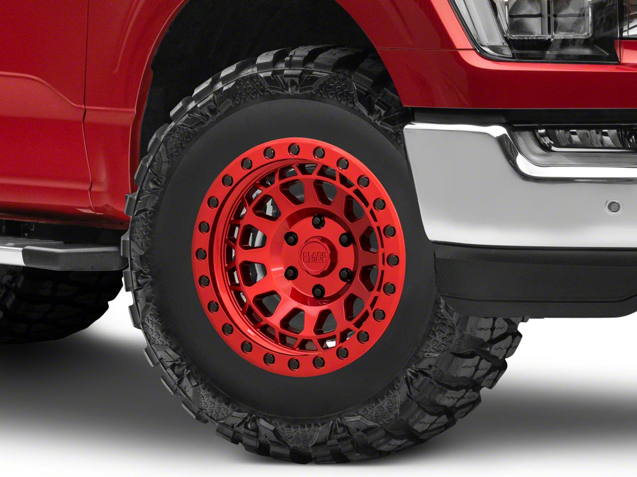 Application. This Black Rhino Primm Candy Red with Black Bolts 6-Lug Wheel; 17x9; 0mm Offset, with a backspace of 5 Inch, 127mm and bolt pattern of 6 x 135mm (6 x 5.31-Inch), is designed to provide not only a striking visual appeal but also to contribute significantly to the alignment and driving stability of the vehicle. Its specifications ensure a precise fit with the vehicle model, enhancing the overall driving experience. Built to fit the 2021-2026 F-150, this wheel is sold individually.