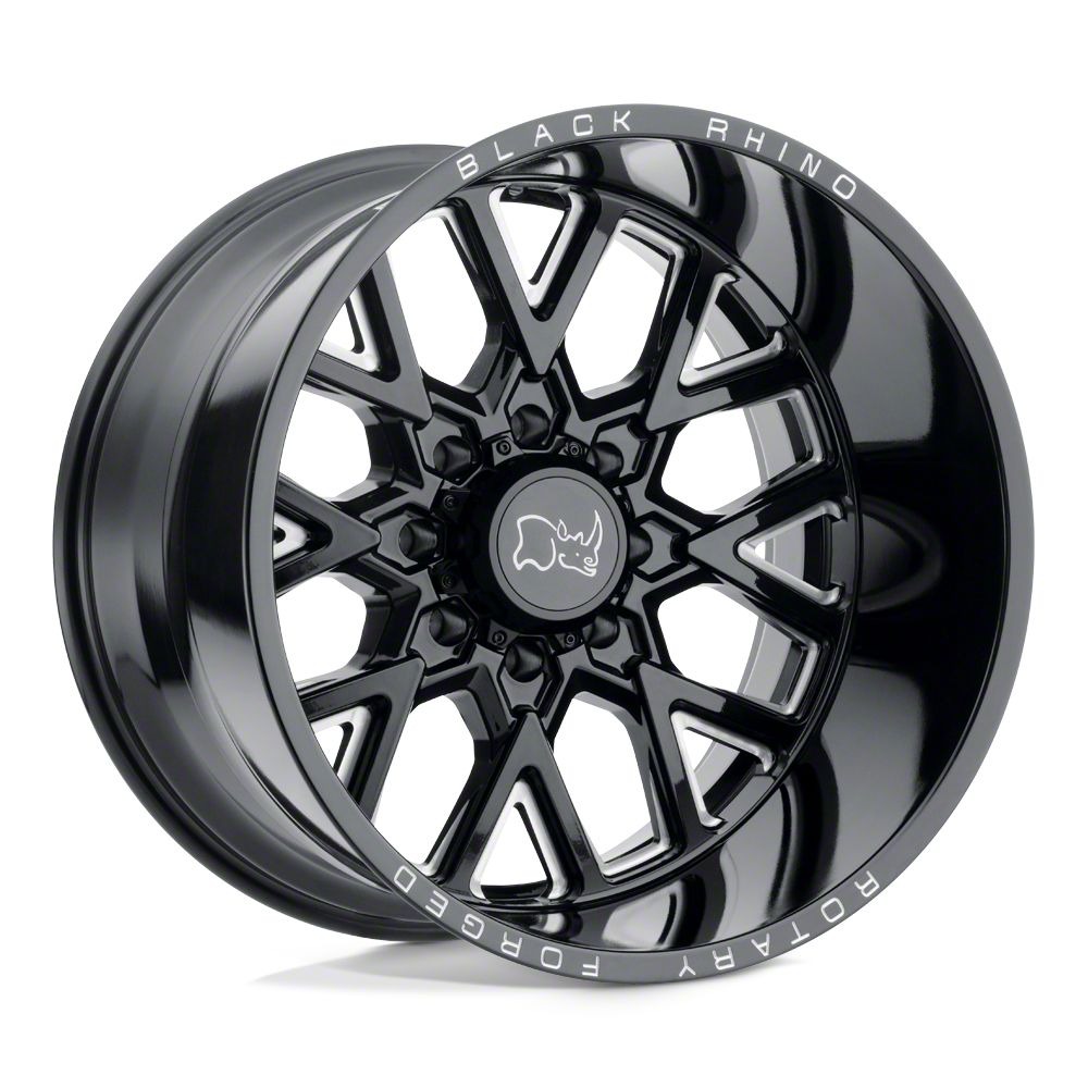 Application. This Black Rhino Grimlock Gloss Black and Milled 8-Lug Wheel; 22x11.5; -44mm Offset, with a backspacing of 4.518 Inch, 114.8mm and a bolt pattern of 8 x 170mm (8 x 6.69-Inch), is designed to fit 2023-2026 models. Sold individually.