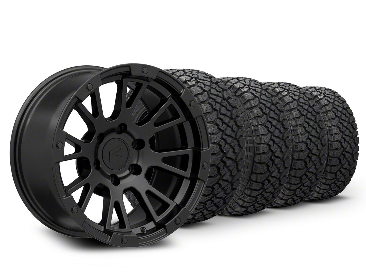 Mounted and Balanced Wheel and Tire Kit. This wheel and tire combo kit features (4) 17x9 Rovos Wheels Karoo Matte Black Wheels and (4) Kenda KLEVER R/T KR601 33" - 285/70R17 tires that have been put together into an easy to buy kit that arrives to your door already mounted and balanced ready to be installed on your vehicle.