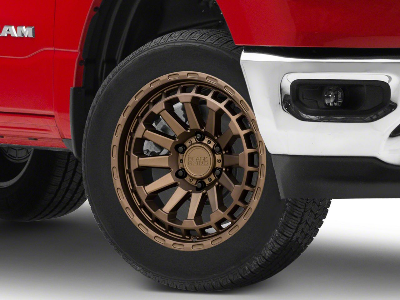 Application. This Black Rhino Raid Matte Bronze 6-Lug Wheel; 20x9.5; 12mm Offset with a backspace of 5.723 Inch, 145.4mm and bolt pattern of 6 x 139.7mm (6 x 5.5-Inch) ensures impeccable alignment and driving stability. It's designed to fit the 2019-2026 RAM 1500 models, sold individually.