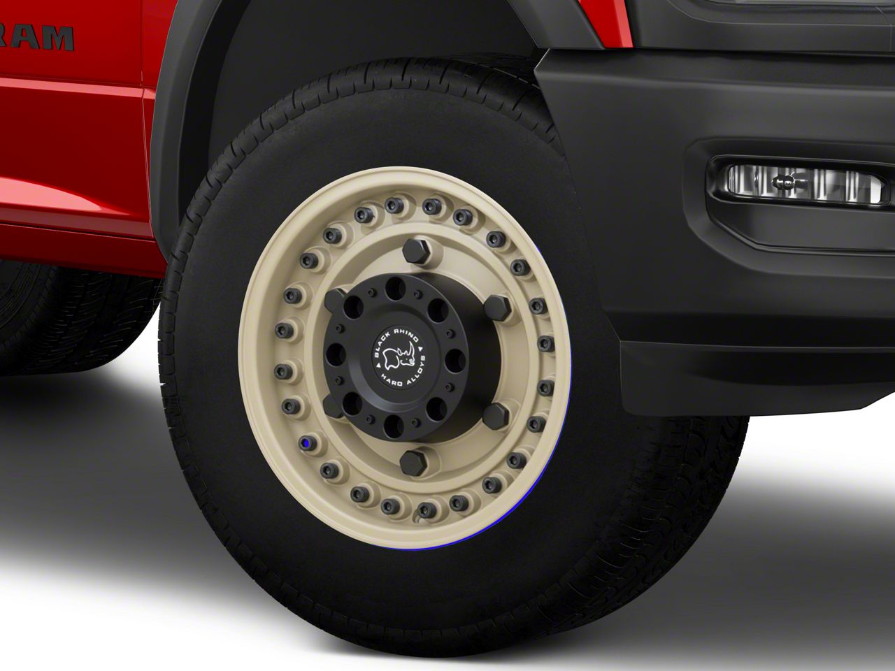 Application. This Black Rhino Armory Desert Sand 8-Lug Wheel; 20x9.5; -18mm Offset, with a backspace of 4.542 Inch, 115.4mm and bolt pattern of 8 x 165.1mm (8 x 6.5-Inch), ensures optimal alignment and driving stability. It is designed to fit 2019-2026 RAM 2500 models. Sold individually.