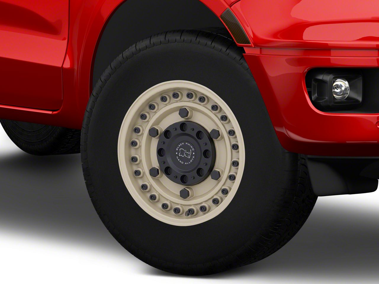 Application. This Black Rhino Armory Desert Sand 6-Lug Wheel; 17x9.5, with a backspace of 5.487 Inch, 139.4mm and a bolt pattern of 6 x 139.7mm (6 x 5.5-Inch), is designed to enhance alignment and driving stability. It's specially designed to fit the 2019-2023 Ranger models, sold individually.