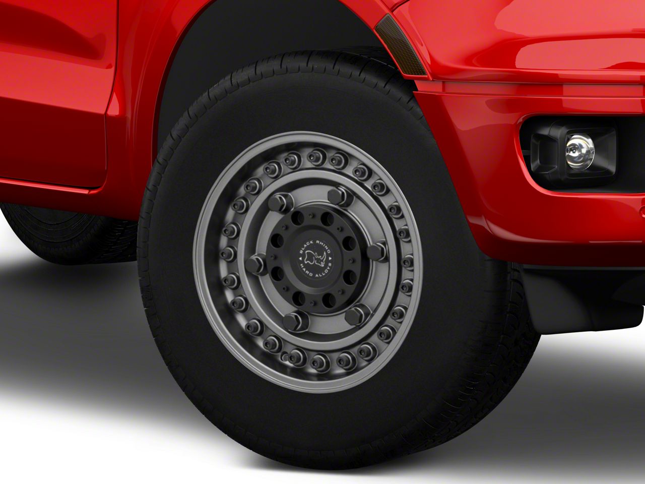 Application. This Black Rhino Armory Matte Gunblack 6-Lug Wheel; 18x9.5; -18mm Offset with a backspace of 4.542 Inch, 115.4mm; and bolt pattern of 6 x 139.7mm (6 x 5.5-Inch), contributes to alignment, driving stability, and ensures a perfect fit with the vehicle model. Designed to fit the 2019-2023 Ranger. Sold individually.