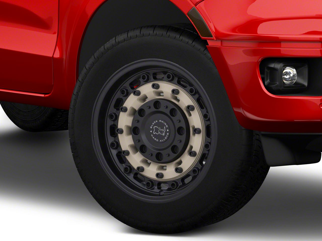 Application. This Black Rhino Arsenal Sand on Black 6-Lug Wheel; 20x9.5; 12mm Offset, with a backspace of 5.723 Inch, 145.4mm and bolt pattern of 6 x 139.7mm (6 x 5.5-Inch), ensures proper alignment and stability. It's designed to fit the 2019-2023 Ranger models, enhancing both the look and the overall driving experience. Sold individually.